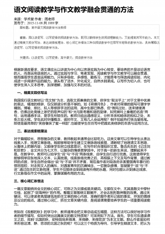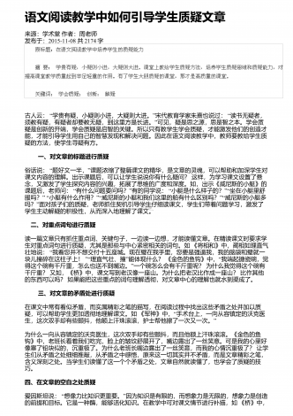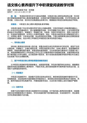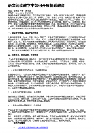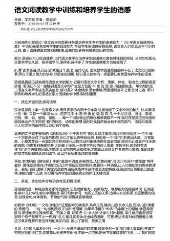 语文阅读教学中对学生进行思维发展的可行性分析来源:中国校外教育作者:魏宏发布于:2018-11-08共2936字 摘要:阅读是语文教学中重要的组成部分,不仅能够提升学生的语感和知识点,还能促进学生的思维发展,从而使其形成正确的价值观。因此,在语文教学中,教师应该注重语文阅读教学对学生思维发展的重要性,根据学生的学习需求和成长特点,设计合理的阅读教学模式,帮助学生开阔视野,提升综合素质。 关键词:语文阅读教学;思维发展;影响;通过语文阅读,学生可以从认知情感和价值态度等方面,提升自己的文学素养...