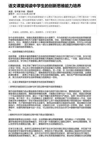 语文阅读教学中对学生进行思维发展的可行性分析