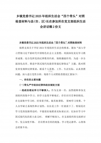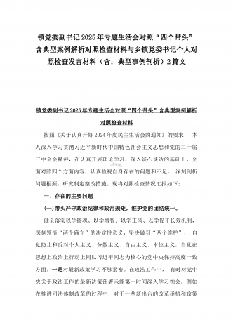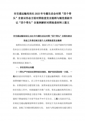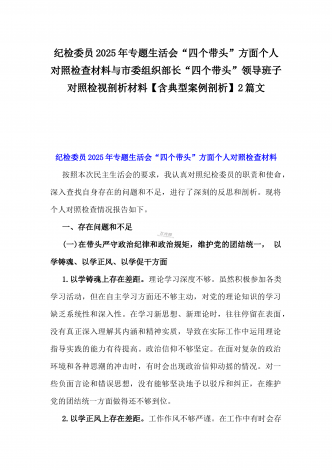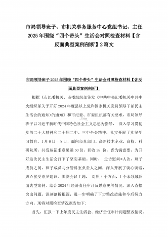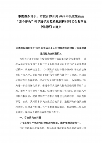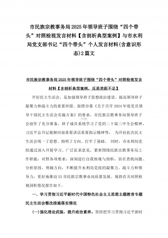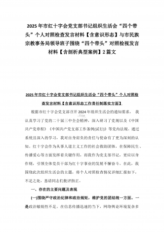 2025年市红十字会党支部书记组织生活会“四个带头”个人对照检查发言材料【含意识形态】与市民族宗教事务局领导班子围绕“四个带头”对照检视发言材料【含剖析典型案例】2篇文