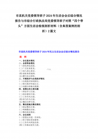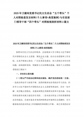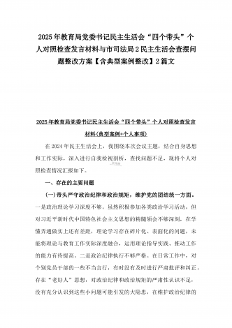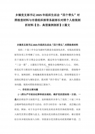 2025年市红十字会党支部书记组织生活会“四个带头”个人对照检查发言材料【含意识形态】与市民族宗教事务局领导班子围绕“四个带头”对照检视发言材料【含剖析典型案例】2篇文2025年市红十字会党支部书记组织生活会“四个带头”个人对照检查发言材料【含意识形态工作责任制落实方面】根据市红十字会党支部召开2024年组织生活会的通知要求,我认真学习了党的二十届三中全会精神,深入研习了党规以及《中国共产党章程》《中国共产党支部工作条例(试行)》等党内法规。通过系统且深入的学习,我对自身肩负的责任与使命有了更为...