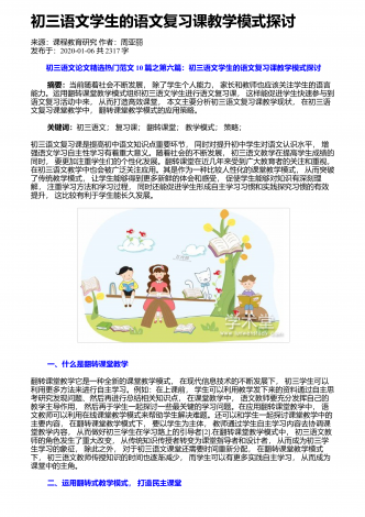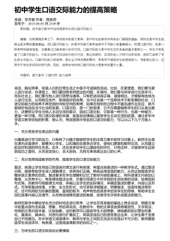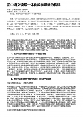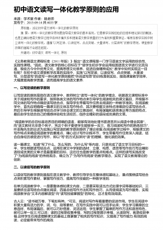 初中文言文的教学问题与思考来源:学周刊作者:陈英发布于:2018-12-20共2288字摘 要:当下,文言文教学现状不容乐观,学生学习难度大,无法触类旁通,在生活中难以学以致用,因此学习兴趣缺失。但是文言文的教学作用不容小觑,文言文的学习可以让学生近距离地接触中国传统文化,在学习中加深对中国传统语言文化的理解。因此,文言文的教学要注意调动起学生的兴趣,创新教学方式,充分吸引学生参与,加强学生对文言文学习的主动性。 关键词:中语文;文言文教学;主动性;教学中教师要引导学生积极参与,加强学生...