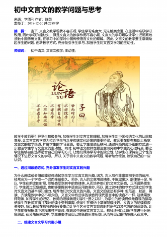 初中文言文的教学问题与思考