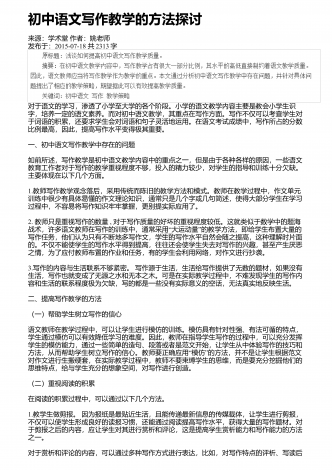 初中语文阅读能力培养的方式方法来源:学术堂作者:刘老师发布于:2014-06-04共1869字伴随着新课程标准改革的不断深化,初中语文教师应不断转变教学观念,不断改进教学方法,引导学生主动参与语文阅读教学之中,激发学生的阅读兴趣,培养学生的阅读能力,进而锻炼其知识探究和思考的精神,提高其阅读信息搜集与处理的能力,最终全面提高其整体学习能力.一、初中语文阅读教学的现状.传统应试教育根深蒂固的影响,在一定程度上约束了素质教育的开展,教学更倾向于考试,而忽略了学生对知识的实际应用能力.初中语文教学中,...