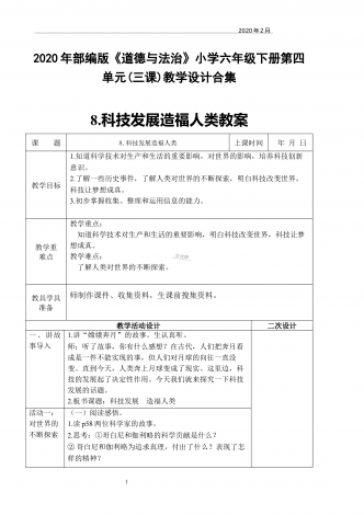 2020年春部编小学六年级下册《道德与法治》第六课探访古代文明第2课时教学设计