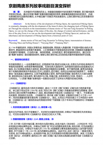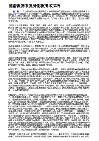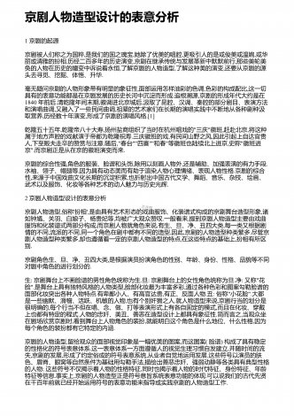京剧人物造型设计的表意分析1京剧的起源京剧被人们称之为国粹,是我们的国之瑰宝,她除了优美的唱腔,更吸引人的是或俊美或温婉,或华丽或清雅的扮相.历经二百多年的历史演变,京剧在继承传统与发展革新中默默前行,那些美轮美奂的人物在历史的嬗变中诉说着永恒,了解京剧的人物造型,了解这种美的演变,还要从京剧的源头去寻觅、挖掘、体悟、升华.毫无疑问京剧的人物形象带有明显的象征性,面部运用怎样油彩的色调,色彩的构成配比,这一切具有的表意功能都是在京剧发展的历史长河中沉淀而形成.追根溯源,京剧的形成年代大约是在18...