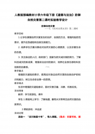 2020年春部编小学六年级下册《道德与法治》第六课探访古代文明第1课时教学设计6.探访古代文明教案课题6.探访古代文明(第一课时)上课时间年月日教学目标1.初步养成珍惜,领悟和传承古代文明遗迹的意识,宣传中国文化。2.初步理解珍惜古代文明遗迹的意义,初步学会探究古代文明成就。了解不同的文化,尊重文化多样性。3.用在情景体验、调查交流、创新展示的过程中,增强中华民族文化自信,宣传中国文化。4.初步感知古代文明成就,感受古代古代劳动者智慧。理解不同文化的特色,为中国文化走向世界而感到骄傲。教学重难点...