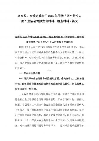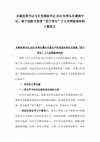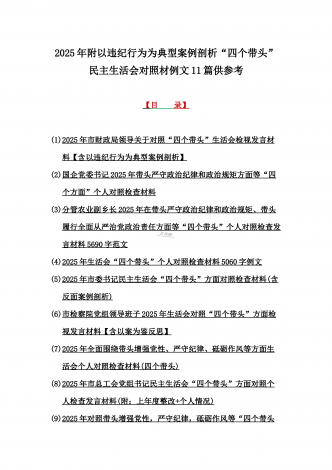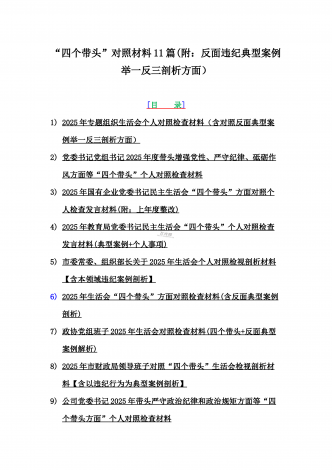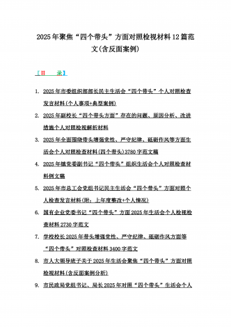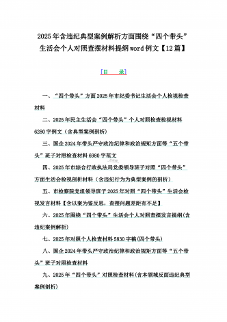 2025年教育局党委书记“四个带头”个人对照检查发言材料(典型案例+个人事项)与校领导对照“四个带头”方面对照个人检视发言材料【含:围绕本领城违纪行为典型案例分析方面】2篇文2025年教育局党委书记民主生活会“四个带头”个人对照检查发言材料(典型案例+个人事项)在2024年民主生活会上,我围绕本次会议主题,结合自身思想和工作实际,深入进行自我检视剖析,查找问题不足,现将个人对照检查情况汇报如下。一、存在的主要问题(一)带头严守政治纪律和政治规矩,维护党的团结统一方面。一是政治理论学习深度不够。虽...