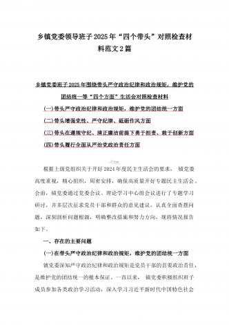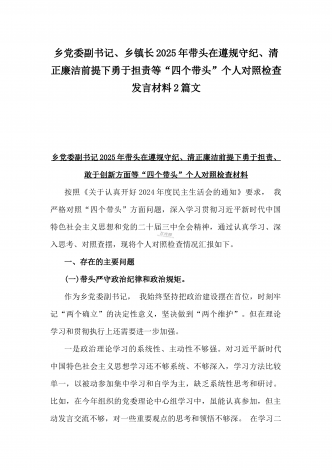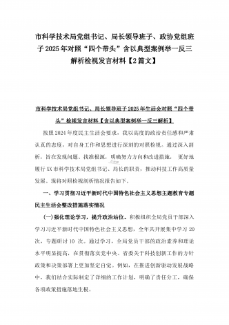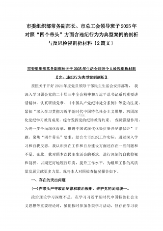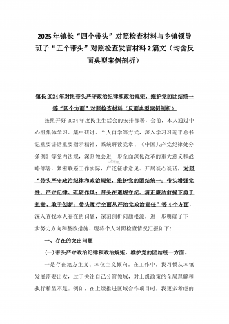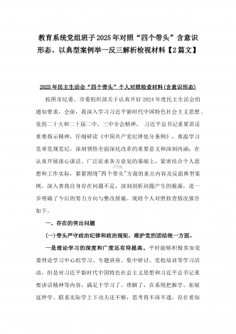 2025年教育局党委书记“四个带头”个人对照检查发言材料(典型案例+个人事项)与校领导对照“四个带头”方面对照个人检视发言材料【含:围绕本领城违纪行为典型案例分析方面】2篇文
