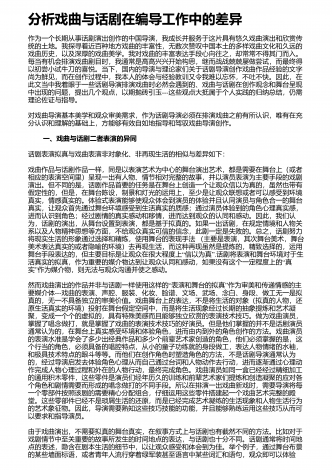 基于中西戏剧差异探讨我国戏曲发展路径字摘 要: 本文通过对中西方文化的比较, 从艺术欣赏的角度溯本求源, 试图从文化学视角反观舞台艺术创作, 剖析中西方戏剧艺术的差异, 进而为中国独特的戏剧舞台艺术创作提供理论依据,同时也为戏曲艺术的当代发展提供启示, 为文化自信的树立提供坚实基础。舞台如同生活的一面镜子, 生活里我们喜欢什么, 舞台上我们就想看到什么。最好的舞台艺术是雅俗共赏的, 勿庸去讨论舞台表演比近生活好, 还是脱离生活的好。大如奥运会开幕式, 小如街边艺人的路头戏, “”我们始终要...
