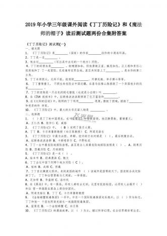 2019年小学三年级课外阅读《丁丁历险记》和《魔法 师的帽子》读后测试题两份合集附答案