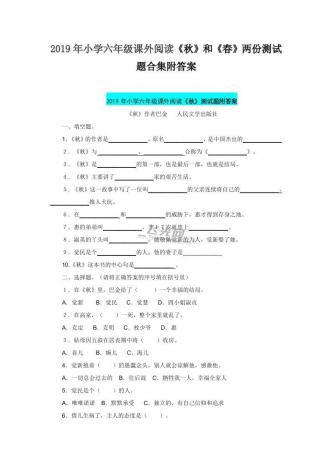 2019年小学六年级课外阅读《秋》和《春》两份测试题合集附答案