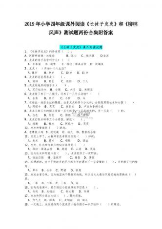 2019年小学四年级课外阅读《长袜子皮皮》和《柳林风声》测试题两份合集附答案