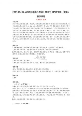 2019年小学人教版部编本六年级上册语文《口语交际:演讲》教学设计