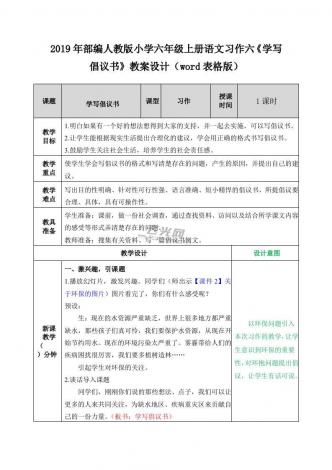 2019年部编人教版小学六年级上册语文习作六《学写倡议书》教案设计(word表格版)