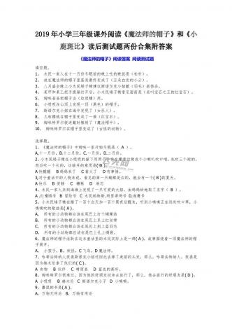 2019年小学三年级课外阅读《魔法 师的帽子》和《小鹿斑比》读后测试题两份合集附答案