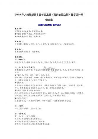 2019年人教版部编本五年级上册《我的心爱之物》教学设计两份合集