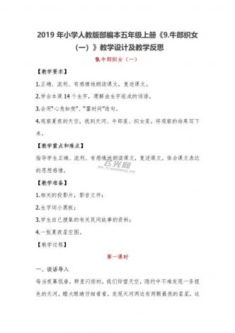 2019年小学人教版部编本五年级上册《9.牛郎织女(一)》教学设计及教学反思