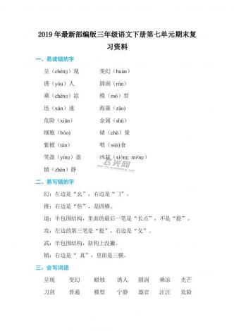 2019年最新部编版三年级语文下册第七单元期末复习资料