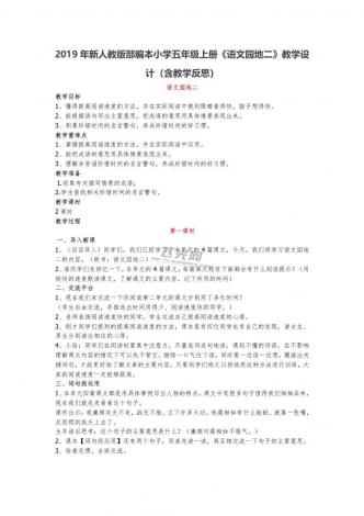 2019年新人教版部编本小学五年级上册《语文园地二》教学设计(含教学反思)