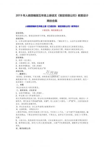 2019年人教部编版五年级上册语文《制定班级公约》教案设计两份合集