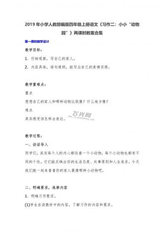 2019年小学人教部编版四年级上册语文《习作二:小小“动物园”》两课时教案合集