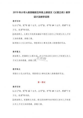 2019年小学人教部编版五年级上册语文《父爱之舟》教学设计及教学反思