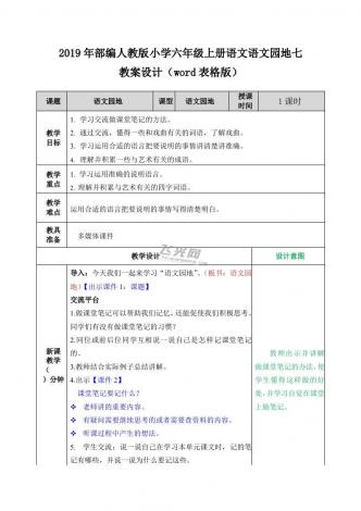 2019年部编人教版小学六年级上册语文园地七教案设计(word表格版)