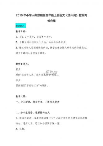 2019年小学人教部编版四年级上册语文《凉州词》教案两份合集