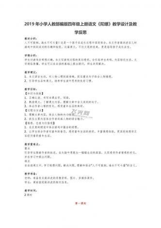 2019年小学人教部编版四年级上册语文《陀螺》教学设计及教学反思