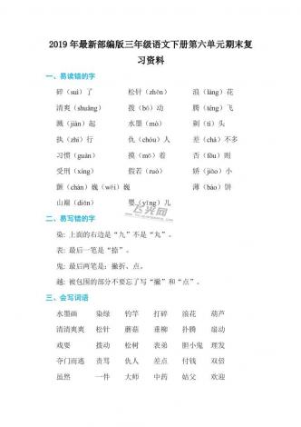 2019年最新部编版三年级语文下册第六单元期末复习资料