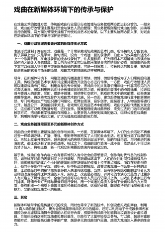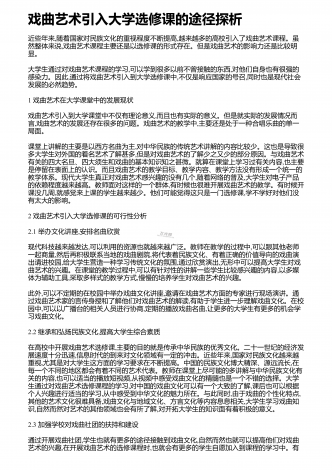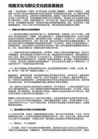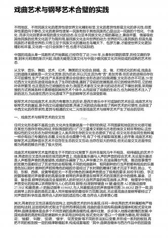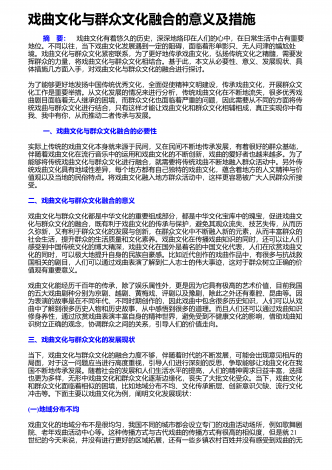 戏曲演员综合素养与艺术表演的关系探究 摘 要:为坚定文化自信,促进文化事业走向繁荣,需重视戏曲文化的传承与发展,并关注守正与创新问题。同时,戏曲作为重要的民族传统文化表现形式,其集故事性、观赏性及艺术性等于一身,能够给观众良好的审美体验。并且,戏曲艺术对演员的综合素质要求较高,从业人员不仅应具有扎实的基本功,需经过系统性的学习,更需兼具良好的政治素养、文化素养与艺术修养。有鉴于此,笔者结合实践工作经验,浅议如何提升戏曲演员的综合素质。我国戏曲文化源远流长,其代表着民族审美,是优秀传统文...