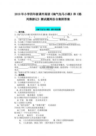 2019年小学四年级课外阅读《淘气包马小跳》和《格列佛游记》测试题两份合集附答案