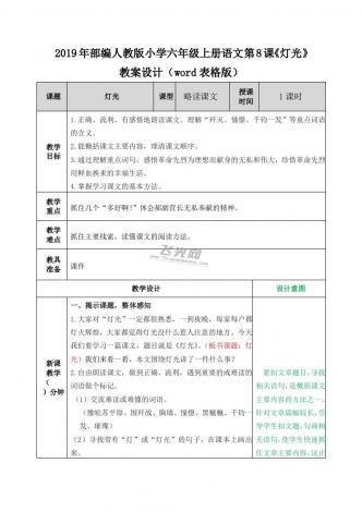 2019年部编人教版小学六年级上册语文第8课《灯光》教案设计(word表格版)