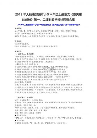 2019年人教版部编本小学六年级上册语文《夏天里的成长》第一、二课时教学设计两课合集