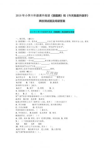 2019年小学六年级课外阅读《狼图腾》和《今天我是升旗手》两份测试题及阅读答案