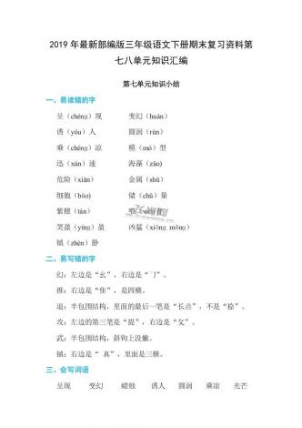 2019年最新部编版三年级语文下册期末复习资料第七八单元知识汇编