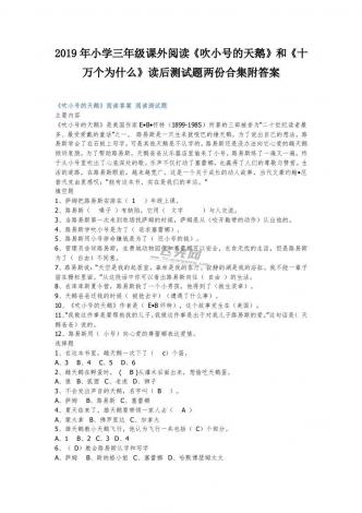 2019年小学三年级课外阅读《吹小号的天鹅》和《十万个为什么》读后测试题两份合集附答案