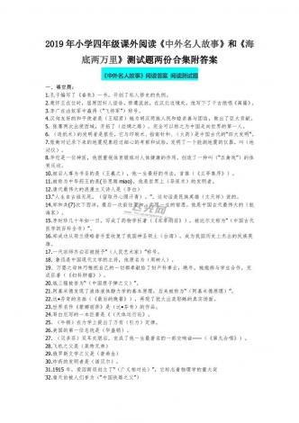 2019年小学四年级课外阅读《中外名人故事》和《海底两万里》测试题两份合集附答案
