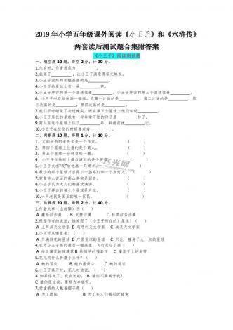 2019年小学五年级课外阅读《小王子》和《水浒传》两套读后测试题合集附答案