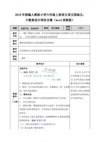 2019年部编人教版小学六年级上册语文园地五、六教案设计两份合集(word表格版)