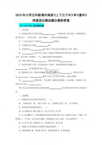 2019年小学五年级课外阅读《上下五千年》和《童年》两套读后测试题合集附答案