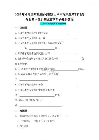2019年小学四年级课外阅读《山羊不吃天堂草》和《淘气包马小跳》测试题两份合集附答案