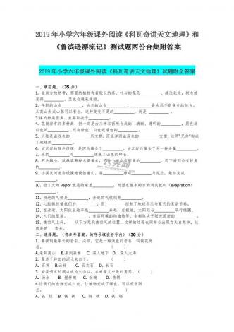 2019年小学六年级课外阅读《科瓦奇讲天文地理》和《鲁滨逊漂流记》测试题两份合集附答案