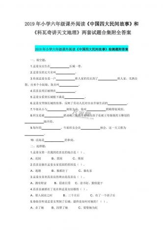 2019年小学六年级课外阅读《中国四大民间故事》和《科瓦奇讲天文地理》两套试题合集附全答案