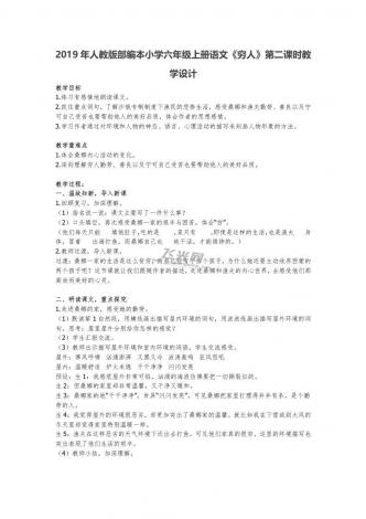 2019年人教版部编本小学六年级上册语文《穷人》第二课时教学设计