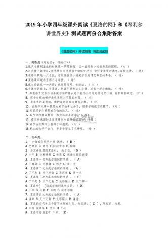 2019年小学四年级课外阅读《夏洛的网》和《希利尔讲世界史》测试题两份合集附答案