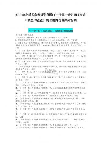 2019年小学四年级课外阅读《一千零一夜》和《装在口袋里的爸爸》测试题两份合集附答案