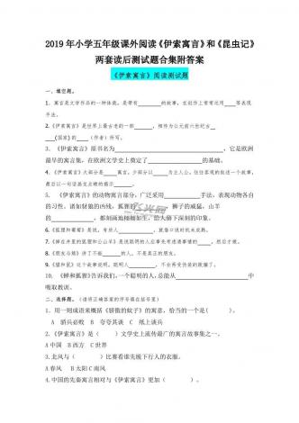 2019年小学五年级课外阅读《伊索寓言》和《昆虫记》两套读后测试题合集附答案