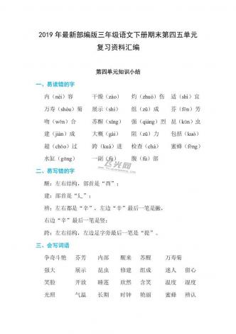 2019年最新部编版三年级语文下册期末第四五单元复习资料汇编