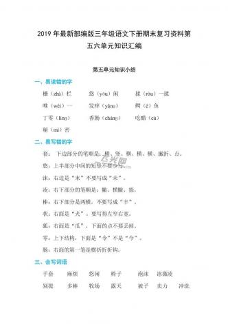 2019年最新部编版三年级语文下册期末复习资料第五六单元知识汇编
